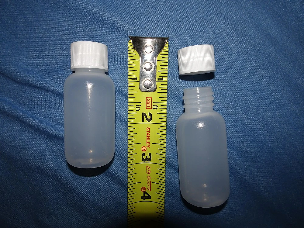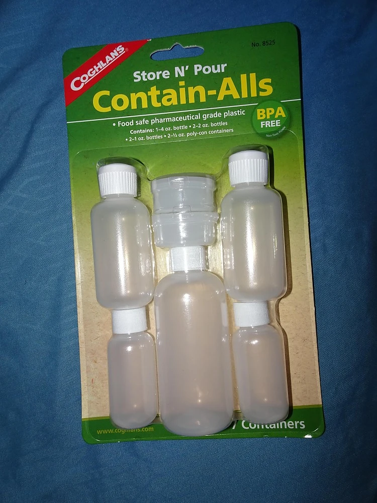 1 – 4 oz / 120 ml bottle, 2 – 2 oz / 60 ml bottles, 2 – 1 oz / 30 ml bottles and 2 – 1/2 oz / 15 ml polycon containers